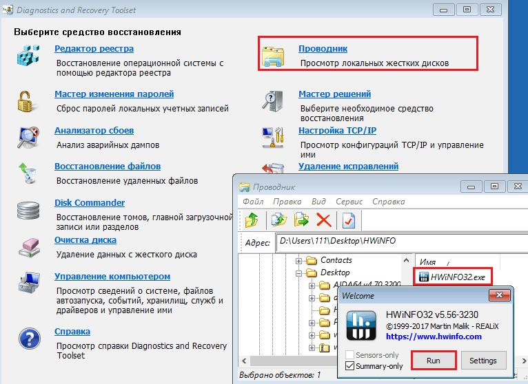 Как запустить HWiNFO, CPU-Z и AIDA64 в среде MSDaRT