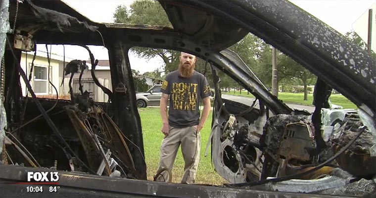 Американец Натан Дорначер (Nathan Dornacher) оставил заряжаться свой Galaxy Note7 в Jeep Grand Cherokee. Спустя какое-то время он услышал тревожный лай собаки, выглянул на улицу и обнаружил свой джип объятым пламенем.