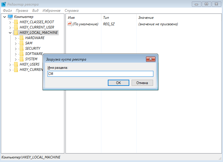 Выберите файл SYSTEM и нажмите на кнопку «Открыть» - Пишем произвольное название в поле «Имя раздела» только латинскими буквами. Кликните по ОК.