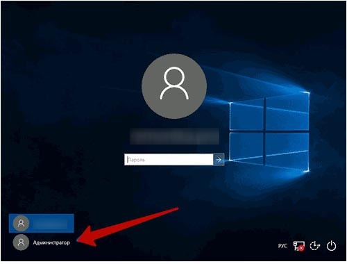 Когда команда успешно выполнится (иногда, после нее может потребоваться перезагрузка компьютера), должен появится выбор учетных записей. Нам необходимо выбрать аккаунт администратора и не вводя пароль войти в него.